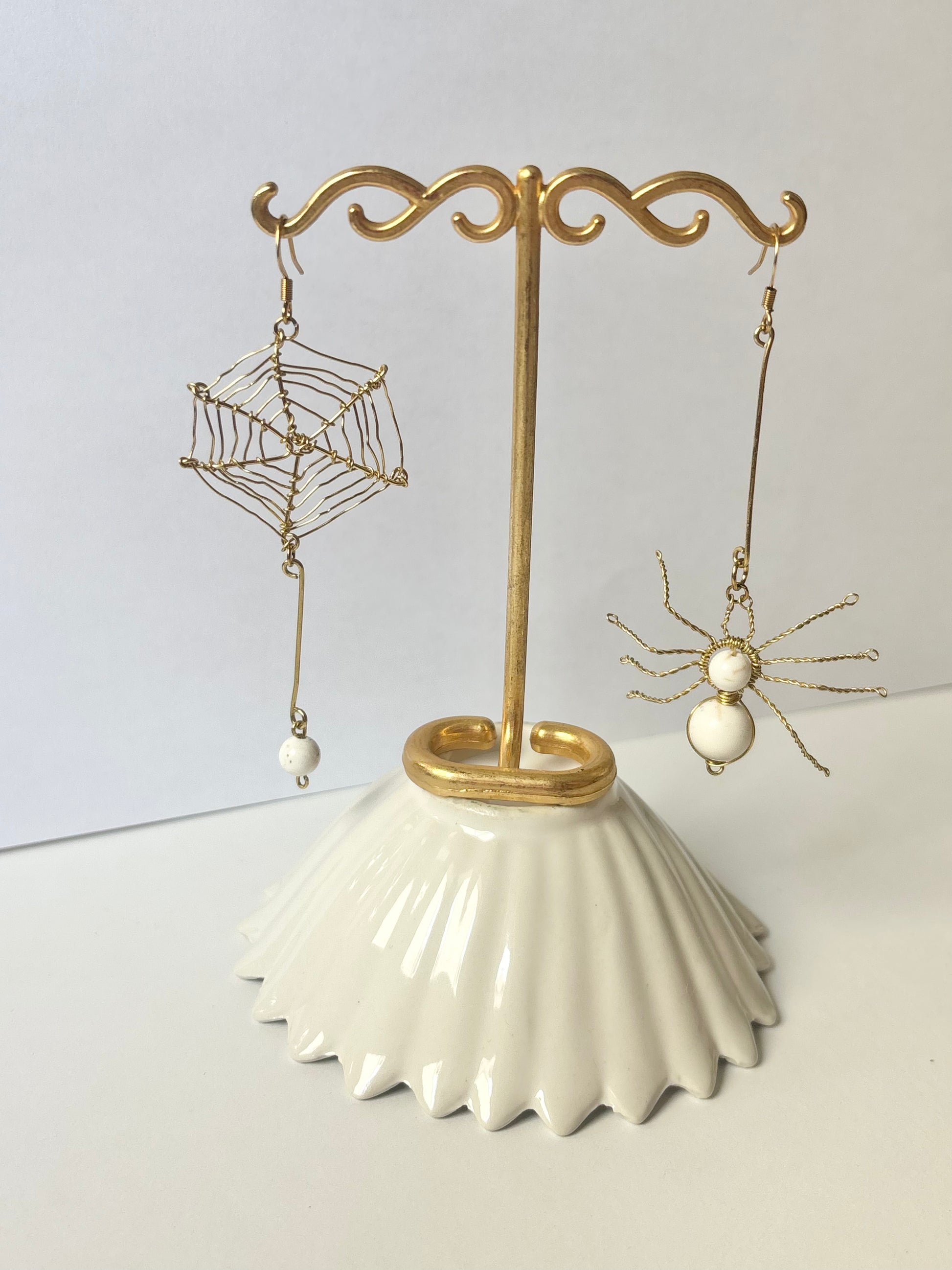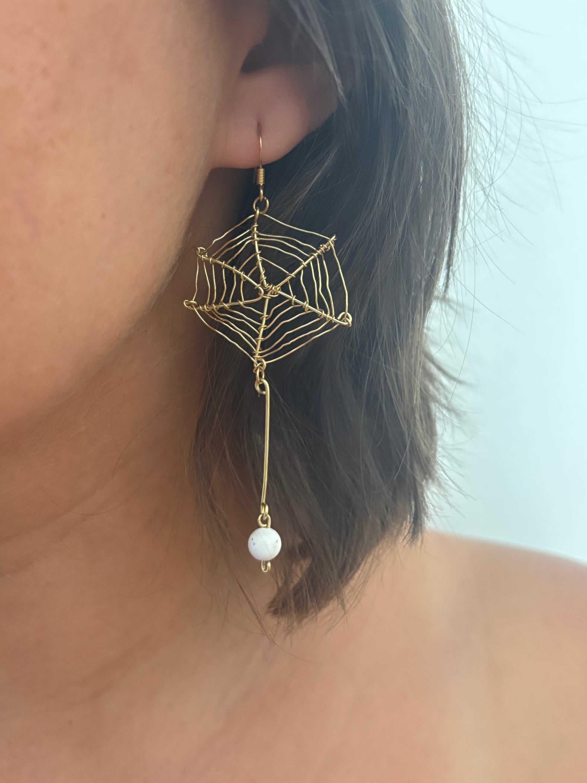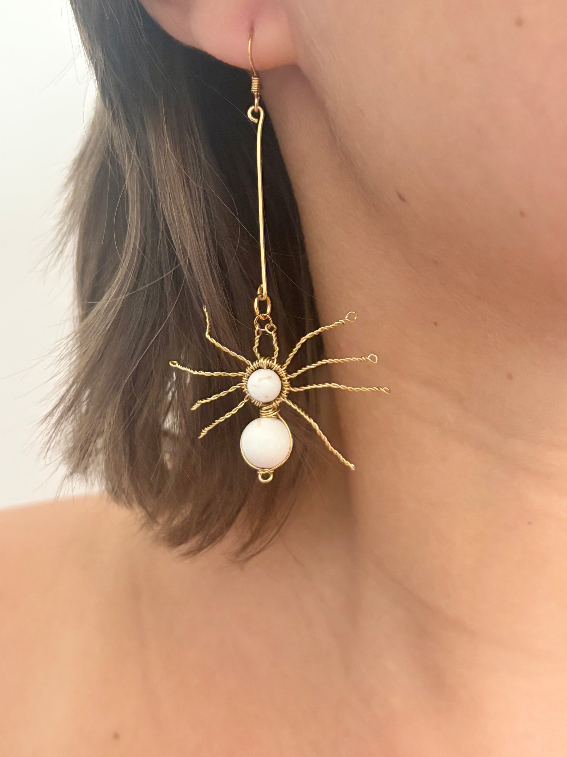 À La Réunion, les babouks font partie de notre quotidien — impressionnants, un peu mystérieux, mais finalement inoffensifs et fascinants. C’est en m’inspirant d’eux que j’ai imaginé ces boucles d’oreilles asymétriques : une araignée d’un côté, sa toile délicate de l’autre.