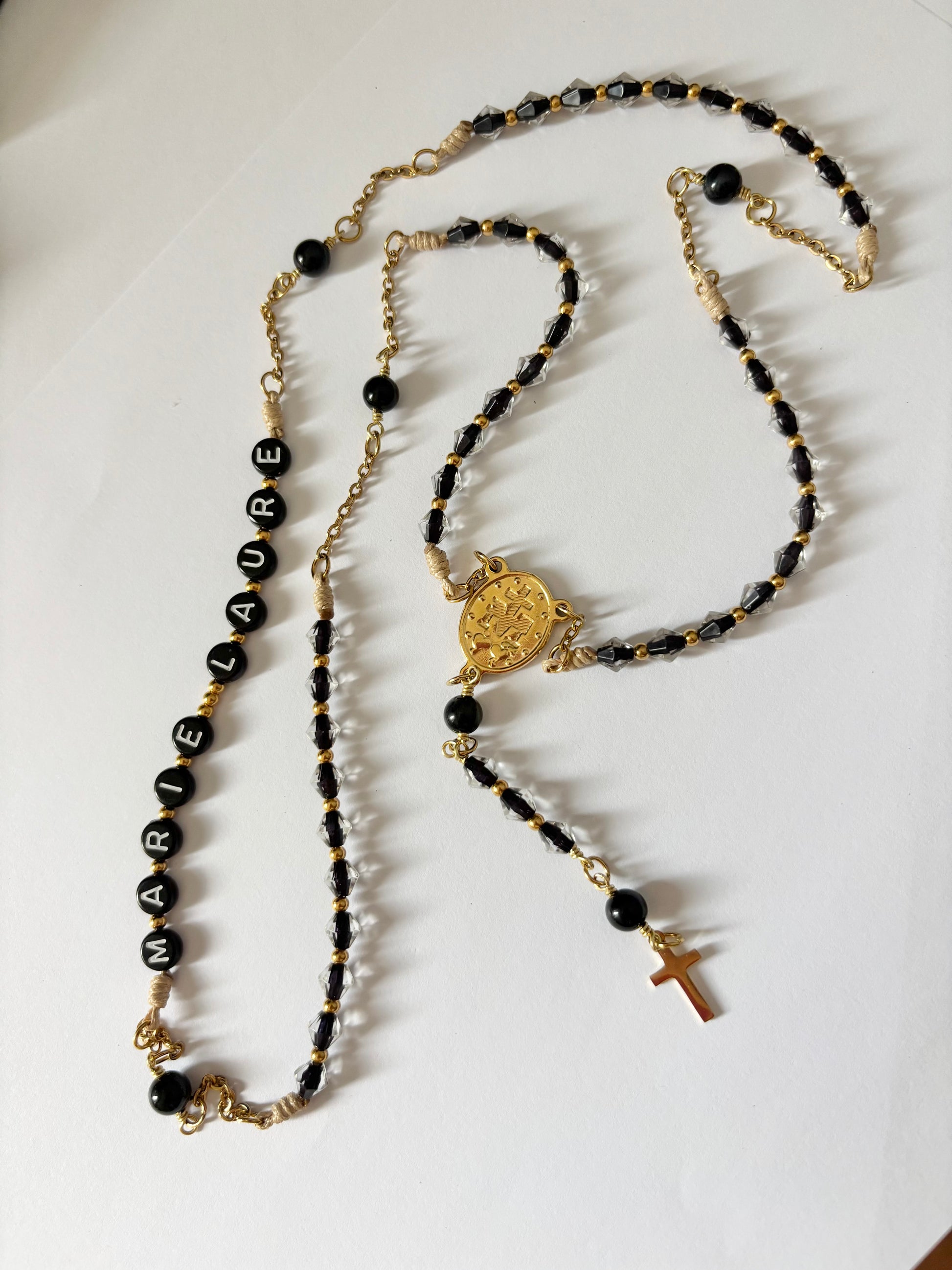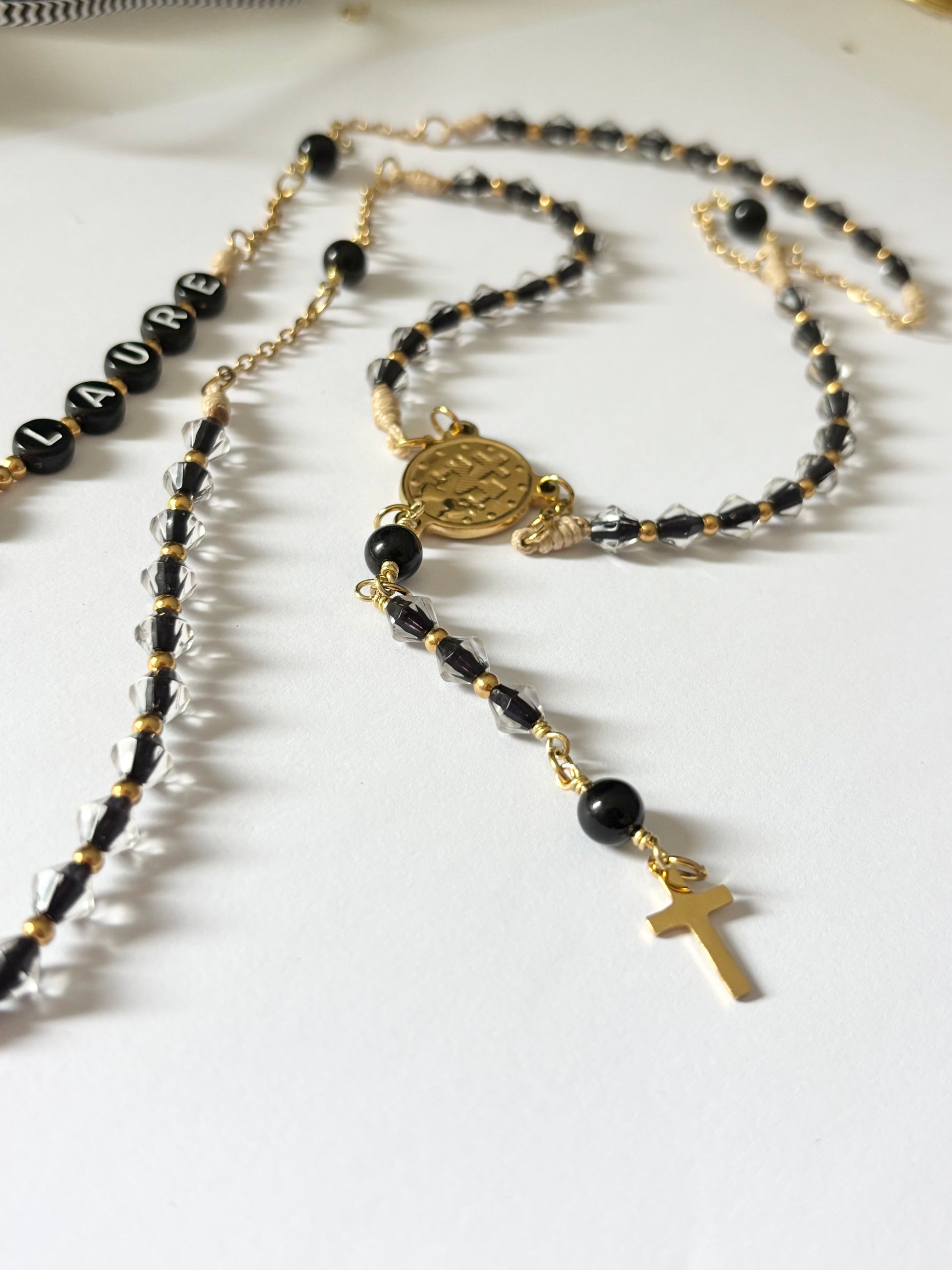 Ce chapelet a été imaginé pour allier foi, douceur et élégance. Il est composé de perles de verre lumineuses et de pierres naturelles. Chaque pièce est façonnée à la main avec soin, pour créer un bijou unique, porteur de sens et de sérénité.