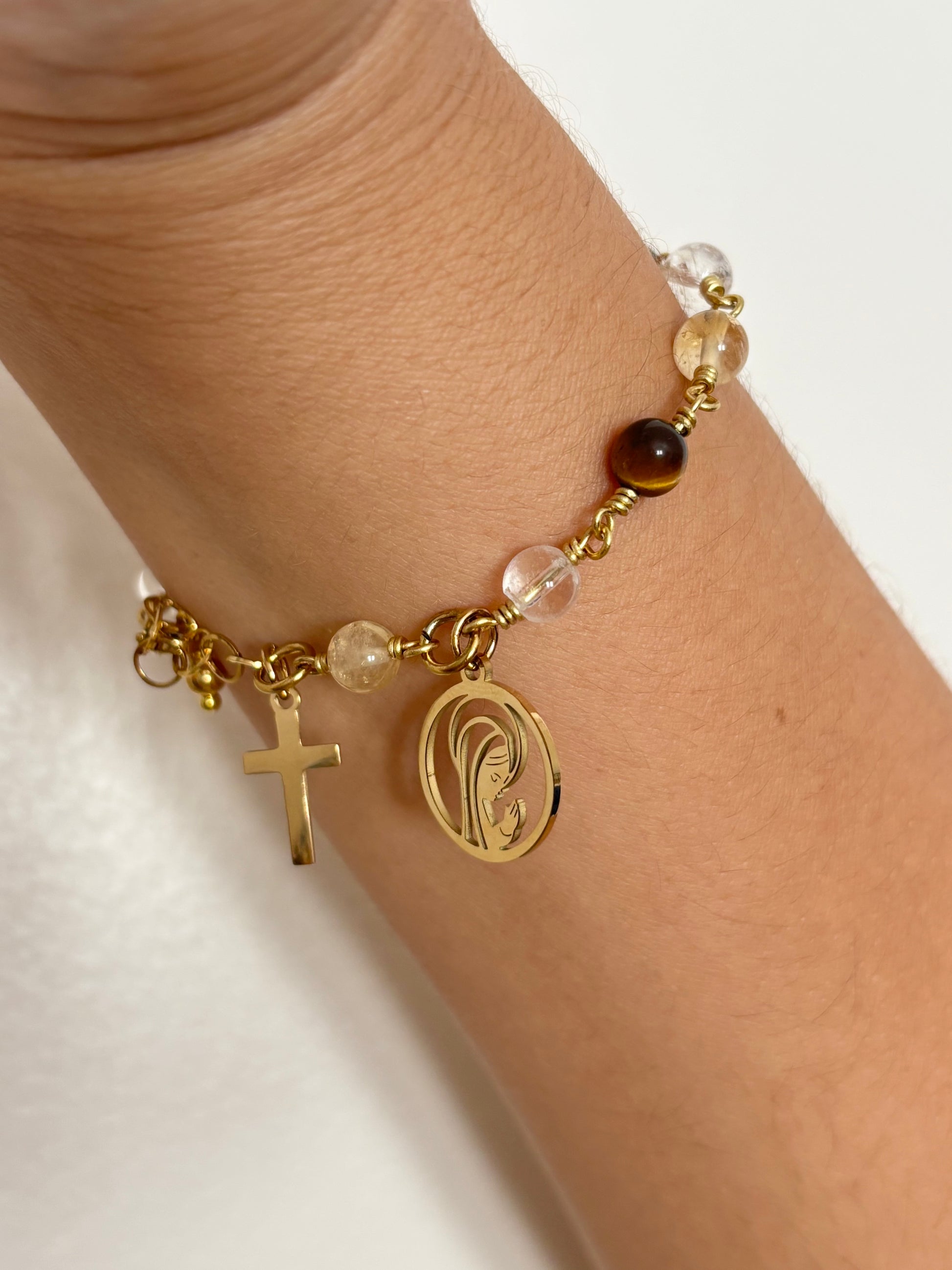 Dizainier MOTIVATION - Oeil de tigre, Citrine, Cristal de Roche
